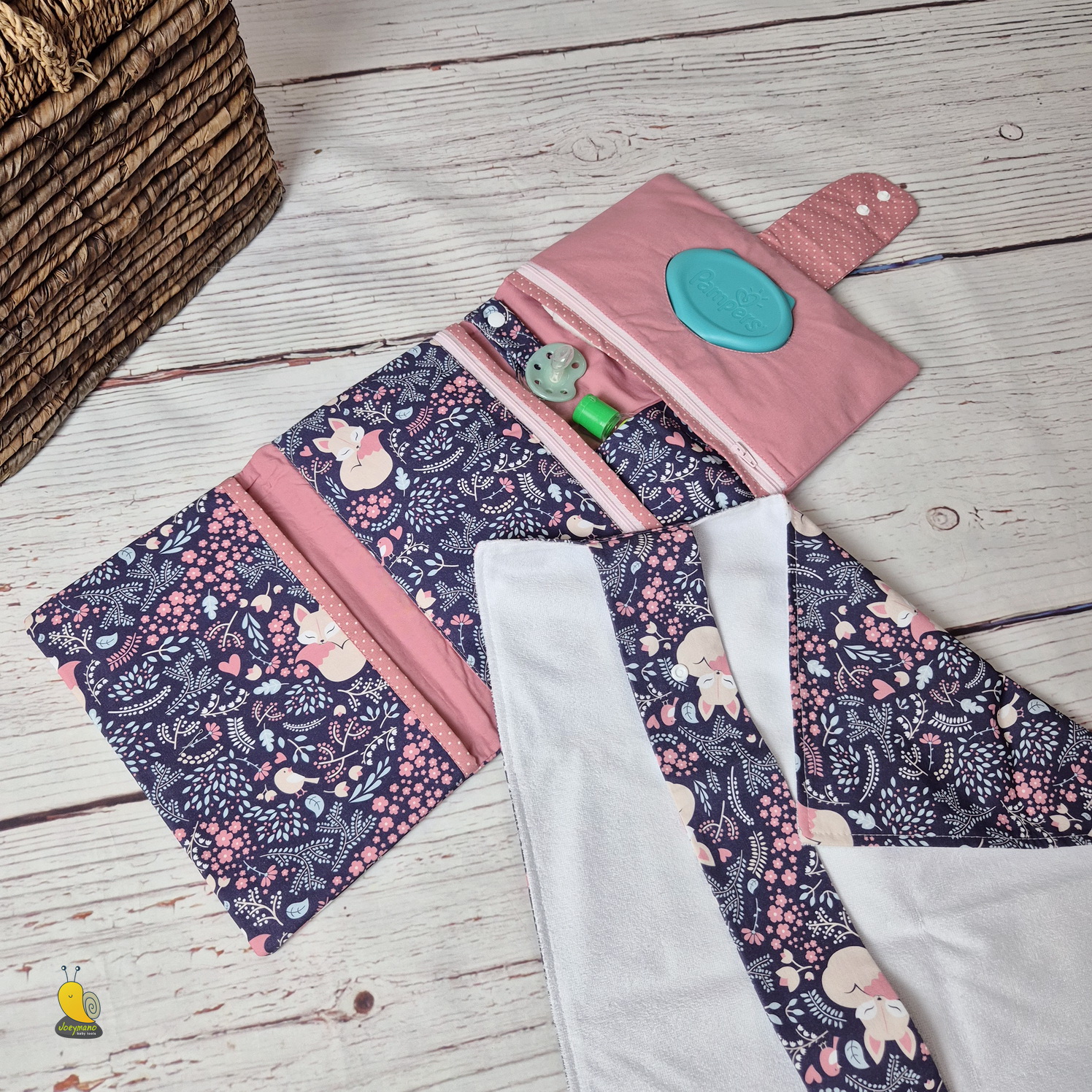 Ha neked is fontos a környezetvédelem, kérj hozzá mosható pelenkázó alátétet. Az egyik oldala a pelustartóval egyező minta, a másik oldala vízzáró frottír. Ennek mérete 45×55 cm. Összehajtva a pelustartó egyik zsebébe csúsztatható.