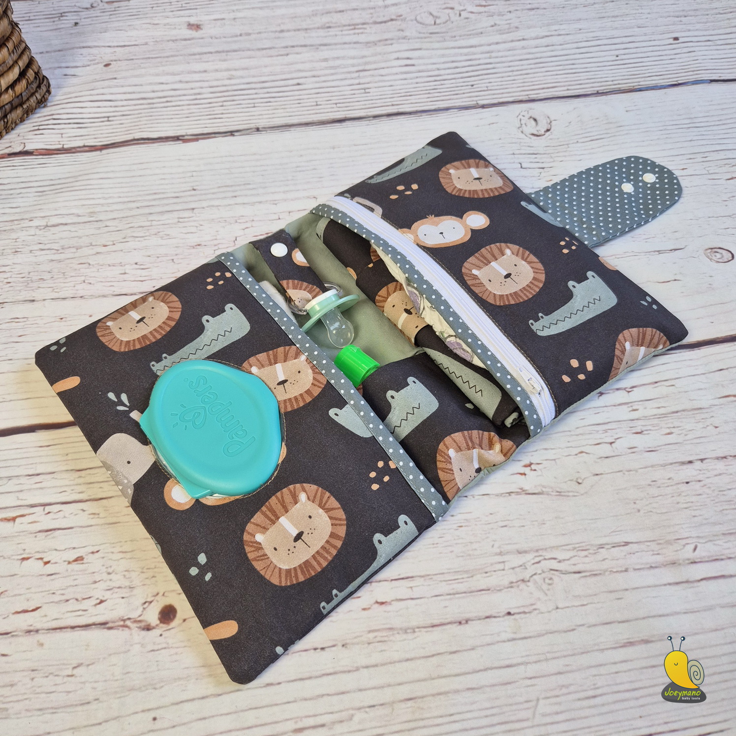 Ebben a pelenkázó neszesszerben könnyen elfér minden holmi, ami a pelenkázáshoz szükséges (pelenka, popsitörlő, krém, váltás ruha, cumi). Könnyen magaddal viheted a táskádban vagy a babakocsiban. Utazáshoz is ideális.